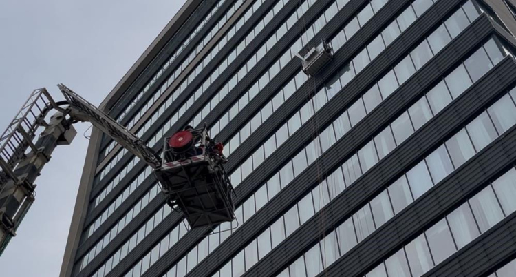 Bursa'da özel bir hastanenin dış cephe camlarını silen 2 işçi, asansör sistemi arıza yapınca 52 metre yükseklikte mahsur kaldı. İtfaiye ekiplerinin yaklaşık 2 saatlik çalışmasıyla işçiler kurtarıldı.