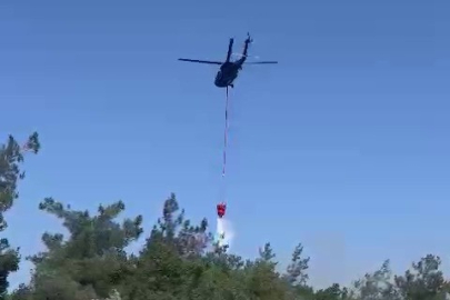 Yangın bölgesinde ekiplerin yoğun çalışması sürerken, havadan helikopterle destek sağlanarak yangının yayılmasının önüne geçilmeye çalışılıyor.
