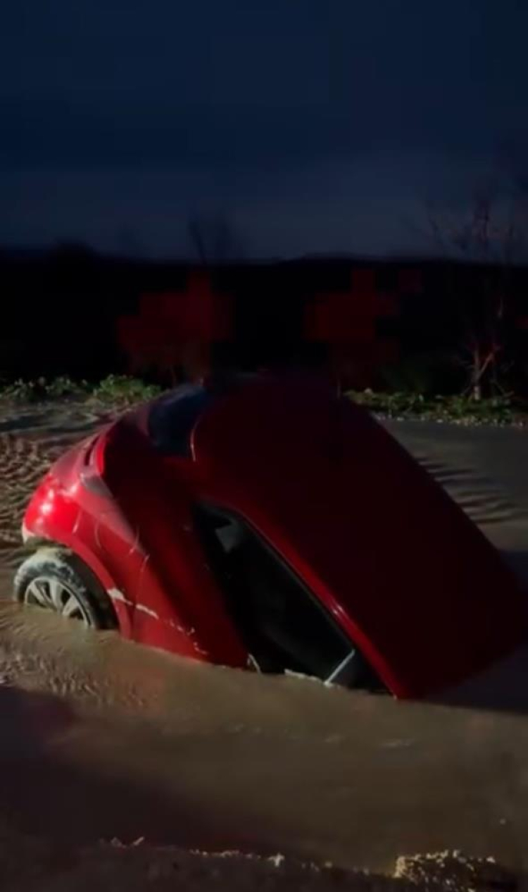 Bursa'nın Nilüfer ilçesinde yol çalışması nedeniyle oluşan çamura giren otomobil bataklığa saplandı. Araç yarıya kadar çamura gömülürken, sürücü otomobilden son anda çıkarak kurtuldu.