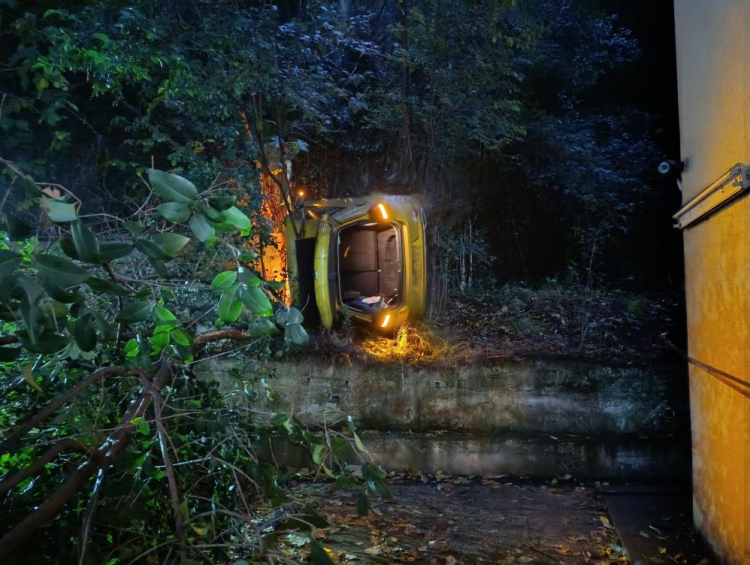 Bursa'da otoparktan çıkarken sürücüsünün kontrolünü kaybettiği otomobil, 10 metrelik yükseklikten sitenin bahçesine uçtu. Kazada sürücü yaralandı