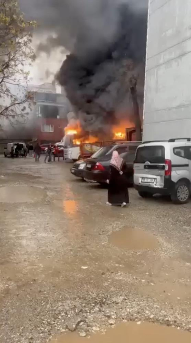 Bursa'da park halindeki midibüs alev alev yandı