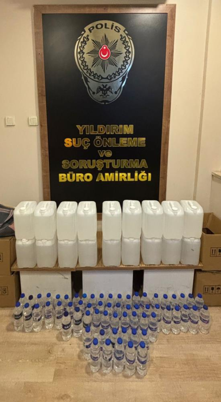 Yıldırım İlçe Emniyet Müdürlüğü Suç Önleme ve Soruşturma Büro Amirliği ekipleri, sahte alkol imalatı ve satışına yönelik yürüttüğü istihbarî çalışmalar çerçevesinde, pazarcılık yapan V.H. isimli şahsı takibe aldı. Şahsın ilçede araçla dolaşarak sahte içki sattığını tespit etti. Çemberi daraltan ekipler, şüphelinin adresine Cumhuriyet Başsavcılığı koordinesinde operasyon düzenledi.