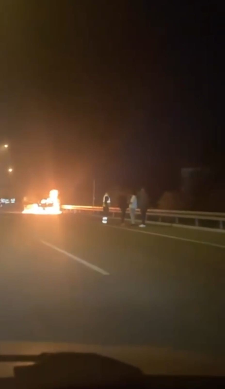 Bursa-Gemlik Yolu üzerinde meydana gelen olayda, seyir halindeki bir otomobil motor bölümünden arıza yaparak alev aldı. Sürücü, çıkan duman ve alevleri fark eder etmez aracı sağ şeride çekerek durdu.
