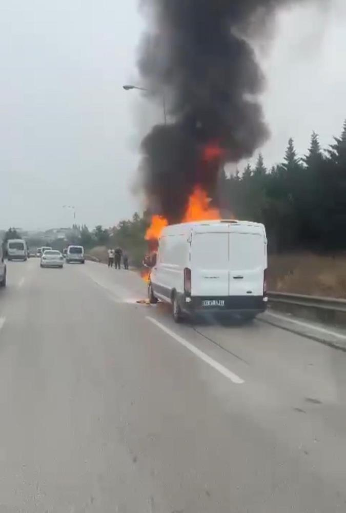 Bursa'da seyir halindeki servis minibüsü alev alev yandı
