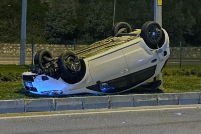 Bursa'nın Mudanya ilçesinde orta refüje çarpıp takla atan otomobildeki 2 kişi yaralandı.