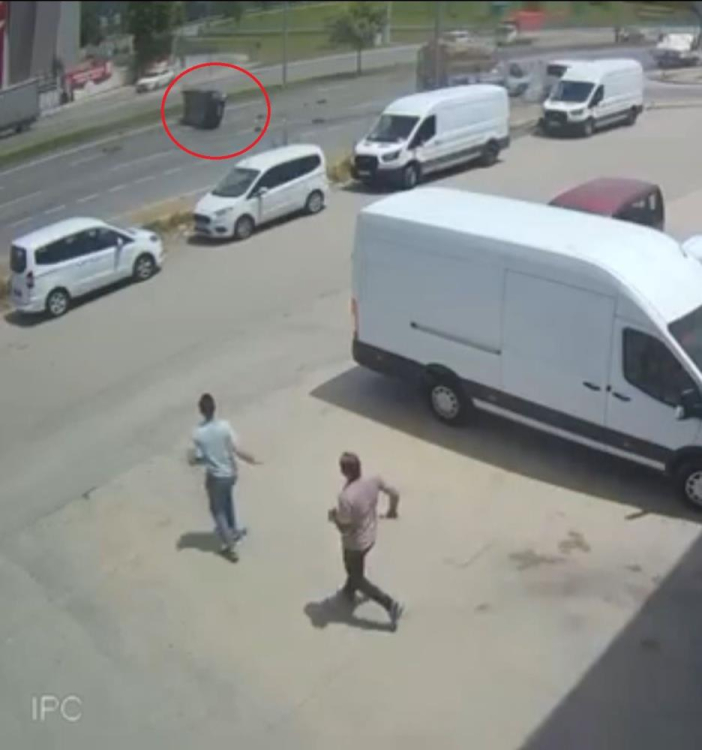 Öte yandan, kaza anı ise bir işyerinin güvenlik kamerasına saniye saniye yansıdı.