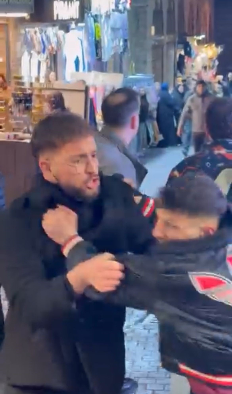 Yumrukların havada uçuştuğu anlar saniye saniye kameraya yansırken, panik yaşayan vatandaşlar olay yerinden uzaklaşmaya çalıştı.