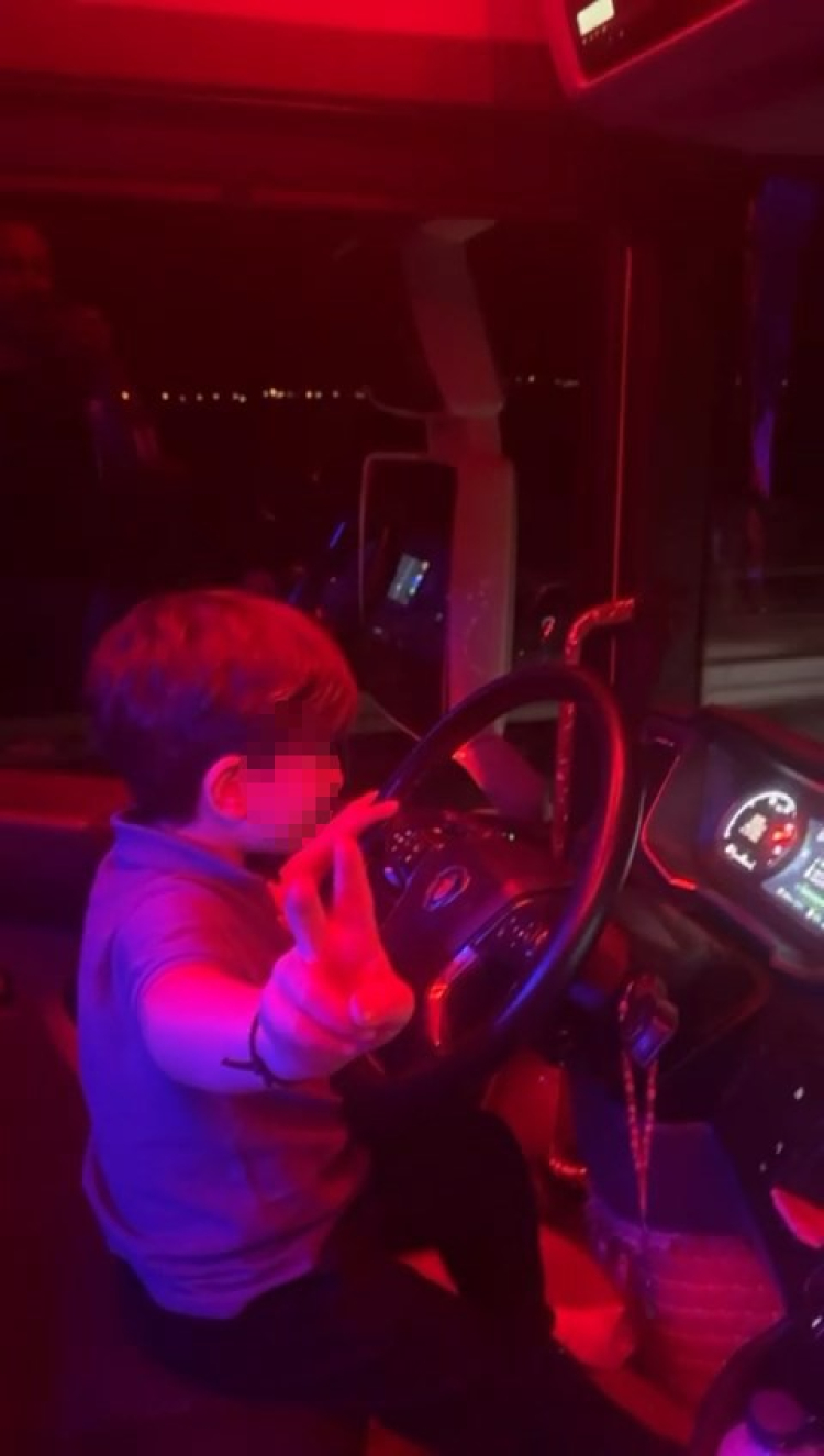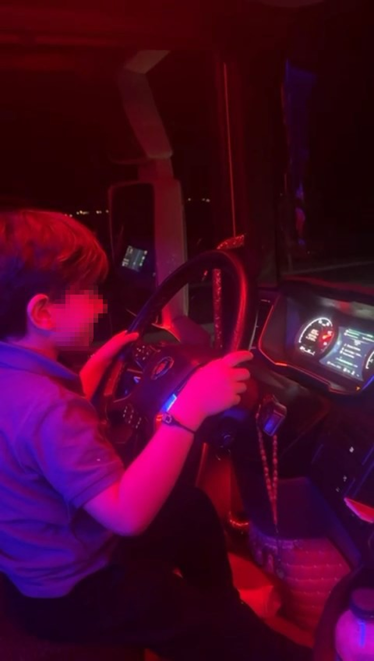 Bursa'da TIR kullanan 7 yaşındaki Çınar yürekleri ağza getirdi