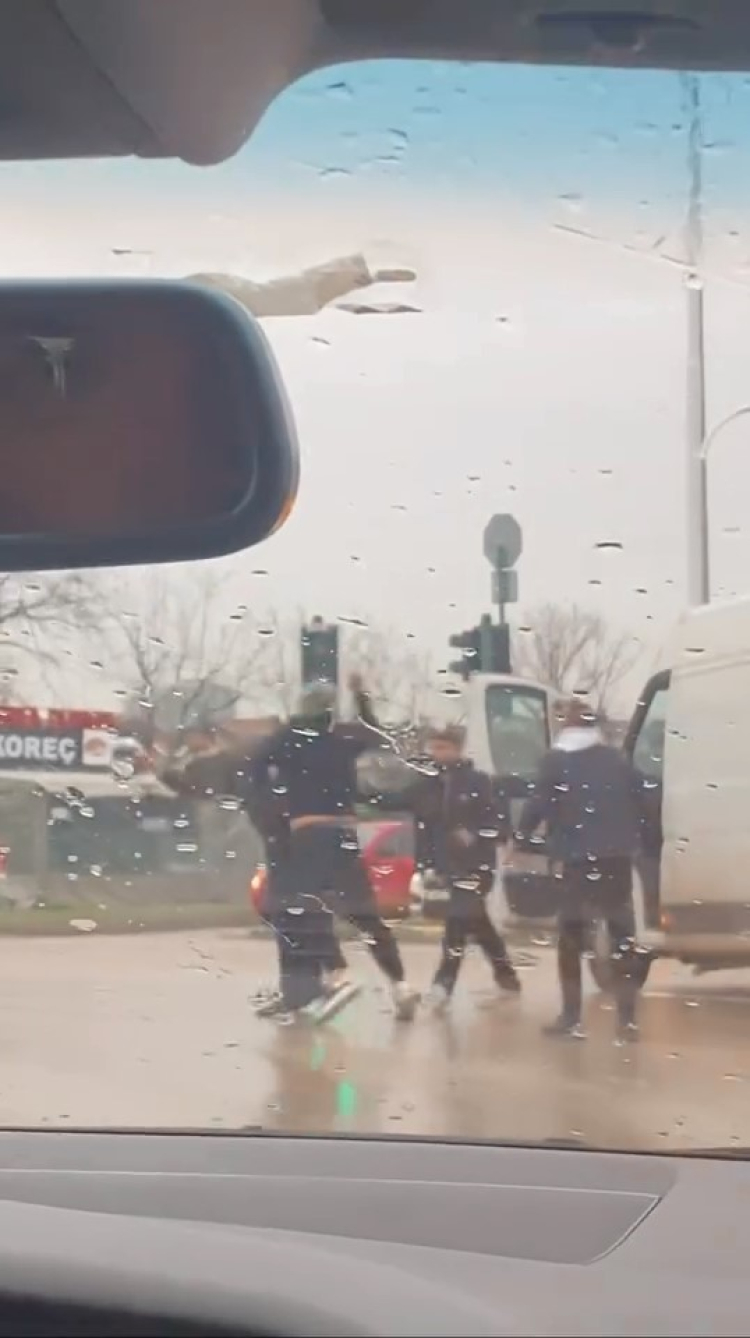 Kentte iki sürücü arasında trafikte başlayan sözlü tartışma kısa sürede kavgaya dönüştü. Yumruk yumruğa kavga eden şahıslar, bir süre sonra hiçbir şey olmamış gibi araçlarına binerek yola devam etti. Çevredeki vatandaşların şaşkın bakışlarla izlediği o anlar bir vatandaşın cep telefonuyla anbean kaydedildi.