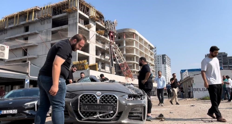 Olay, Bursa’nın Nilüfer ilçesine bağlı 23 Nisan Mahallesi’nde 17.00 sıralarında meydana geldi. Edinilen bilgiye göre, inşaat alanındaki vinç, büyük bir gürültüyle yola devrildi. Yola devrilen vinç içerisindeki kabinde operatör mahsur kaldı. Yol üzerinde park halinde olan lüks otomobil ise üzerine devrilen vinç sebebiyle hurda yığınına döndü.