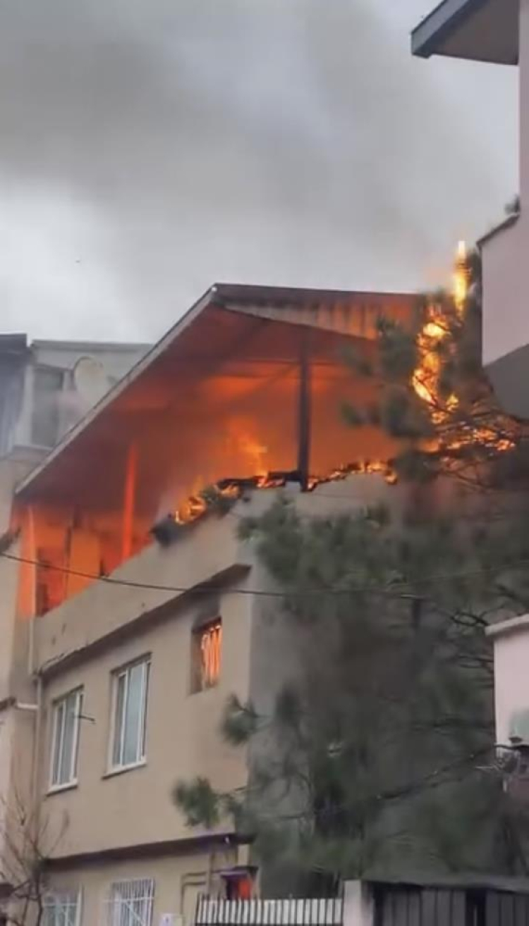 Bursa'da çıkan çatı yangını en üst kattaki daireye sıçradı. Dairenin alev topuna döndüğü yangın korkulu anlar yaşattı.