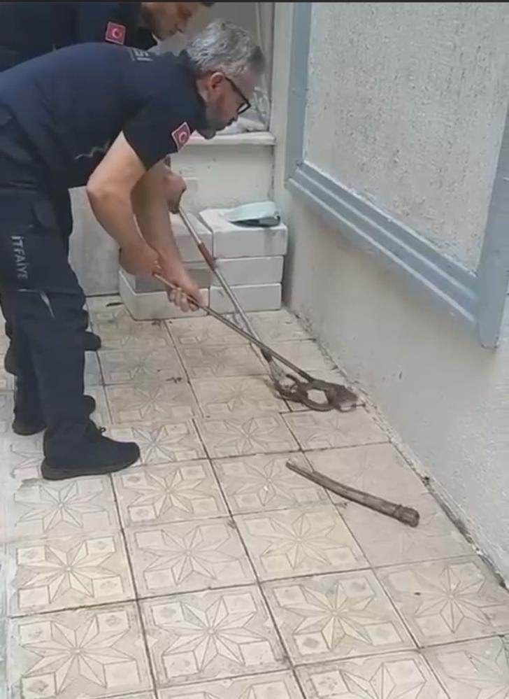 Bursa'nın Yıldırım ilçesindeki bir ara sokakta görülen ve büyük korkuya neden olan yılan, itfaiye ekipleri tarafından yakalandı. O anlar kameraya yansıdı.