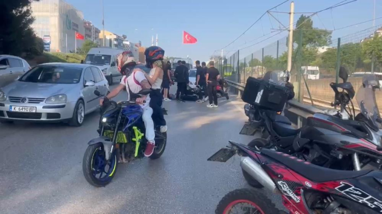 Kaza, araç kamerasına da saniye saniye yansırken, motosikletlilerin araçların arasından akrobasi yapar gibi ilerlemesi de kayda alındı.