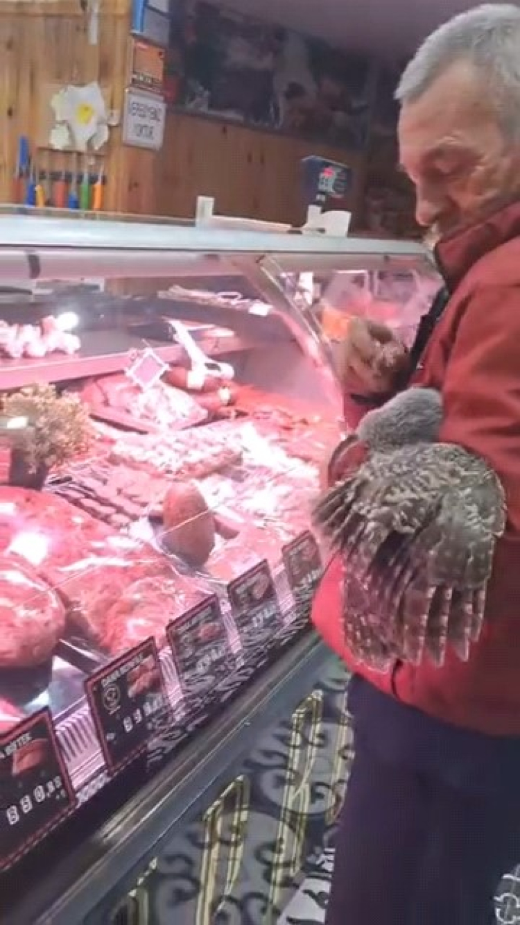 Bursa'nın İnegöl ilçesinde yuvasından düşen yavru baykuşa sahip çıkan vatandaşlar, kuşu kasaba götürerek etle besledi.