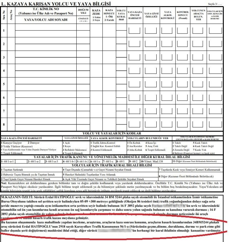 Olayın görgü tanıklarına göre, F.G. hakimiyetindeki otomobilin sürat yaptığı ve makas atarak trafiği tehlikeye attığını kaydeden Hatipoğlu, "Kaza krokisinde hatalı bir çizim var. Araç şeridinde giderken tam önüne kırmış şeklinde görünüyor. Bize başka bir kamera kaydı verilmedi ama verilen kamera kaydında da anlaşılıyor ki araç sol şeritten orta şeride araçlar arasında makas atarak geçiyor. İş çıkış saatine göre oldukça süratli ve babama çarpıyor. Bize babamın yüzde yüz kusurlu olduğu söylendi. Bunun sebebini de şerit ihlali olduğunu söylediler. Karşı tarafın süratli gittiği ve makas attığına dair görüntü ve görgü tanıkları var. Görgü tanıklarını jandarma ve savcı dinlemedi. Bölge trafik ekiplerinin kaza tutanağında babam yüzde yüz kusurlu görüldüğü için kovuşturmaya gerek duyulmadı ‘mahkemeniz görülmeyecek' dendi. Biz buna itirazlarda bulunduk ama itirazlarımız reddedildi. Üstelik bize ‘kovuşturmaya yer yoktur' ibareli yazı geldi. Babama çarpan şahıs F.G. ifadesinde ‘çarptım ve aracım fırladı' demiş olmasına rağmen bize gelen ifadede babam hakimiyetini kaybetmiş ve karşı tarafa çarpmış şeklinde yazılmış. Oysaki bu şahsın ifadesinde ve kamera kaydıyla çelişiyor. Bu tamamen anlamsız bir karar. İtirazlarımız hiçbir şekilde bunu değiştiremedi ve biz bunu anlayamıyoruz" şeklinde konuştu.