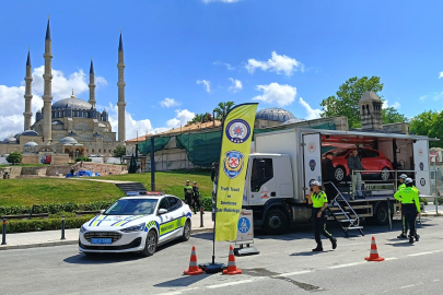 Emniyet Genel Müdürlüğü Trafik Başkanlığı tarafından hazırlanan emniyet kemeri kaza simülasyon tırı, Edirne Selimiye Meydanı'nda vatandaşlarla buluştu. Trafik güvenliğine dikkat çekmek amacıyla düzenlenen etkinlikte, vatandaşlar ve öğrenciler kemer takmanın önemini birebir yaşama fırsatı buldu.