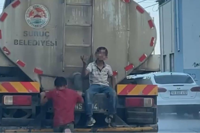 Şanlıurfa’nın Suruç ilçesinde çocukların araçların arkasına tutunarak tehlikeli bir şekilde yolculuk yapmaya çalışması yürekleri ağızlara getirdi.
