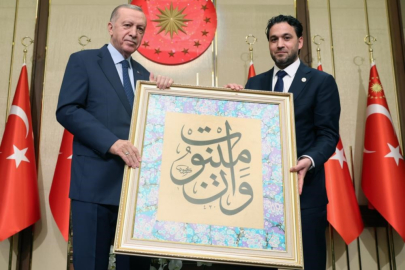 Hattat Mahmut Şahin, “Avrupa’da çalışmalar yürüten Uluslararası Demokratlar Birliği (UID) diye bir kurulum var. Onun bugün Cumhurbaşkanı Sayın Recep Tayyip Erdoğan’a bir ziyareti oldu. O ziyaret öncesinde benim Kocaeli Milletvekili olan öğrencim Raziye Sezer Katırcıoğlu benden rica etti. ‘Hocam, önemli bir toplantı var. Orada takdim edilmek üzere bir yazı istiyoruz’ dedi. Ben de 2009 yılında Dovos mevzusu olduğu zaman bizim Arabi harflerle ‘One Minute’ yazısı yazmıştım. Çok küçük bir şeydi. Tabii Tayyip Bey’e hediye edilecek denilince onu büyüttük. Salı günü yazıyı yazdık ve bugün takdim edildi. Gündem hiçbir zaman değişmiyor. Gazze’de de artık bir ‘One Minute’ çekme zamanı gelmişti. Muhtemelen dünya basını da bunu görecektir diye düşünüyorum. O amaçla böyle bir levha yaptık. Biz sanatçılar, söylemlerimizi mutlaka yazıyla yaparız. Sosyal medyada polemiğe girmemize gerek yok. Biz gündemimizi, sanatımızla belli ediyoruz. Paylaşımlarımızdan anlayan anlıyor zaten” dedi.