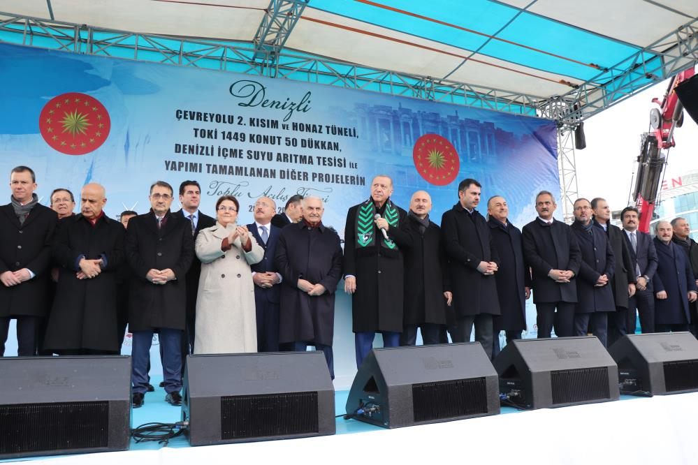 Cumhurbaşkanı Erdoğan, kabinesindeki 9 bakan ve üst düzey bürokratla birlikte, merkezi hükümet, Denizli Büyükşehir Belediyesi ve ilçe belediyelerinin hayata geçirdiği 232 tesisin toplu açılışını gerçekleştirdi.