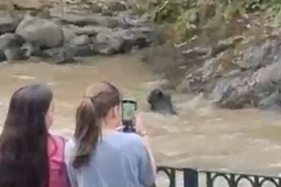 Rize’nin Çamlıhemşin ilçesinde yetişkin domuz dere kıyısında gezerken vatandaşlar tarafından fark edildi. Cep telefonlarıyla vatandaşların kaydetmeye çalıştığı domuz, kayanın üzerinden ayağı kayarak Fırtına Deresi’ne düştü. Bahar mevsiminin gelmesiyle Kaçkar Dağları’nda eriyen karlar nedeniyle debisi yüksek dereden çıkmaya çalışan domuz bir süre akıntıyla mücadele etti. Kayanın üzerine çıkma çabaları sonuç vermeyen domuz yeniden dereye düşerek biraz daha sürüklendi. O esnada vatandaşlar ise bağırarak domuza yol göstermeye çalıştı. Derenin kenarında akıntısız bir yere sığınabilen domuz sonrasında kıyıya çıkarak gözlerden kayboldu. O anlar ise anbean cep telefonu kamerasına yansıdı.