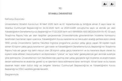 İstanbul Üniversitesi'nin İBB Başkanı Ekrem İmamoğlu ile birlikte diplomasını iptal ettiği 28 kişiden biri olan Galatasaray Üniversitesi İktisadi ve İdari Bilimler Fakültesi Öğretim Üyesi Prof. Dr. Naciye Aylin Ataay Saybaşılı görevine devam ederken, üniversitenin nihai kararı beklediği öğrenildi.
