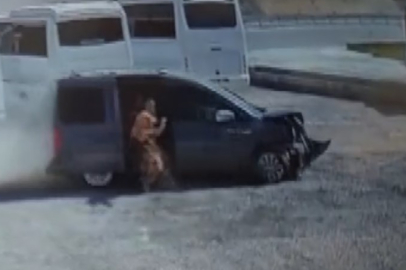 Kontrolden çıkan hafif ticari aracın yol kenarındaki galeriye dalarak park halinde yakıt tankerine çarpıp durma anları ise çevredeki bir güvenlik kamerasına yansıdı. Görüntülerde, çarpma anı öncesi hafif ticari araçta bulunan bir kadının kendini dışarı atma ve aracın altında kalmaktan son anda kurtulma anları ise yürekleri ağza getirdi. Kaza ile ilgili soruşturma başlatıldı.