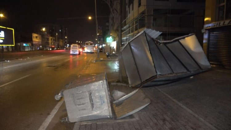 Çok sayıda çatı uçması olayı gerçekleşirken, tenteler ve sert cisimler de havada uçtu