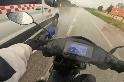 Fırtınada motosiklet sürücüsünü minibüsçü kurtardı