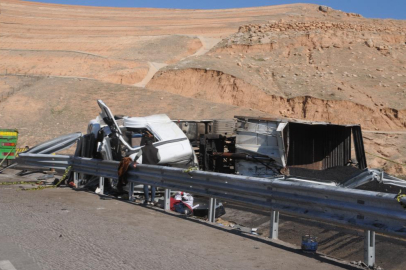 Şırnak'ın Cizre ilçesinde freni boşalan kömür yüklü tırın şarampole devrilmesi sonucu sürücü hayatını kaybetti.
