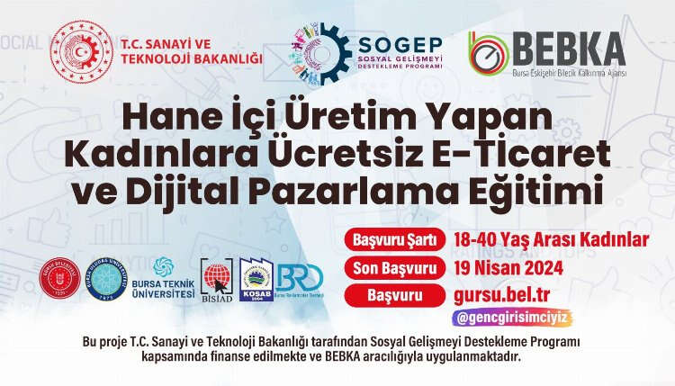 Gürsu Belediyesi ilçedeki kadınlara yönelik ‘E-Ticaret ve Dijital Pazarlama’ eğitimi başlatıyor. Kontenjanlarla sınırlı olan eğitim tamamen ücretsiz ve bakanlık sertifikalı olacak.