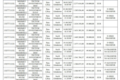 Rapora göre, İmamoğlu'nun oğlu Mehmet Selim İmamoğlu'nun ‘Tectum Investment D.O.O.' adlı Hırvatistan'daki bir şirkete 2023 ve 2024 yıllarında toplam 637 bin 106 Euro tutarında gönderme işlemi gerçekleştirdiği, Hırvatistan'da yerleşik olan bu şirketin Mehmet Selim İmamoğlu'na ait olduğu aktarıldı.