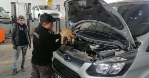 Edinilen bilgilere göre, kent merkezinde yaşanan olayda, panelvan bir araç sürücüsü aracını Küçük Sanayi Sitesi’nde faaliyet gösteren bir oto bakım servisine götürdü. Aracı işlem için iş yeri içerisine alan ustalar, araç kaputunu açtıklarında gelen kedi sesiyle şaşkınlık yaşarken, yavru kediye ulaşmak için büyük uğraş verdi. Bulunduğu yerden ayrılmak istemeyen yavru kedi, yaklaşık 30 dakika süren çalışma sonucu bulunduğu yerden çıkarıldı. O anlar ise müşteriler tarafından cep telefonu kamerasıyla görüntülendi.