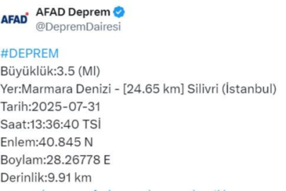İstanbul’da 3.5 şiddetinde deprem oldu