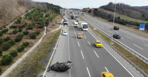 Kaza, bugün saat 15.30 sıralarında İstanbul Havalimanı yolu Kemerburgaz mevkiinde meydana geldi. Edinilen bilgiye göre seyir halindeki iki 2 lüks araç kazaya karıştı. 41 ABT 339 plakalı Seat Leon marka otomobilin sürücüsü aracının direksiyon hakimiyetini kaybedince önündeki 35 FJ 230 plakalı Mercedes marka otomobile çarptı. Çarpmanın etkisiyle 35 FJ 230 plakalı lüks otomobil takla atarken, diğer araç ise ağaçlık alana uçtu. Takla atan lüks otomobilin sürücüsü hafif şekilde yaralanarak hastaneye kaldırılırken, kaza sonrasında yolda uzun araç kuyrukları oluştu. Araçlar vinç yardımı ile yoldan çekilirken, kazaya karışan araçlar dron ile görüntülendi.