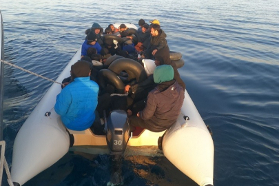 İzmir'in Dikili ilçesi açıklarında lastik bottaki 10’u çocuk 29 düzensiz göçmen, Sahil Güvenlik ekiplerince yakalandı.