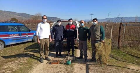 İzmir İl Jandarma Komutanlığı Çevre Koruma Timi ve Menemen İlçe Jandarma Komutanlığı ekipleri, Menemen ilçesi Çavuş Mahallesi’nde bulunan Gediz Nehri kenarında neslinin tükenme tehlikesine karşı koruma altına alınan saka kuşlarının tuzakla avlandığı ihbarını aldı. İhbar üzerine harekete geçen ekipler, bölgede yapılan kontrollerde H.Ç. isimli şahsın tuzakla saka kuşu avladığını tespit etti. Ekipler, yapılan aramalarda avda kullanılan 5 metrekarelik ağ, 20 metre tuzak ipi, 12 metre beyaz ağ ipi, 3 adet el yapımı ahşap kuş kafesi, 40 adet canlı saka cinsi kuş ele geçirdi. Ele geçirilen malzemeler İzmir Doğa Koruma ve Milli Parklar İl Müdürlüğüne teslim edilirken, kuşlar doğaya bırakıldı. H.Ç. isimli şahsa ise Kara Avcılığı Kanunu gereğince 41 bin 45 TL idari para cezası uygulandı.