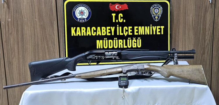 Aramada 124 kök esrar maddesi, 1 adet tek kırma ruhsatsız tüfek, 1 adet otomatik tüfek ve bir adet hassas terazi ele geçirildi.