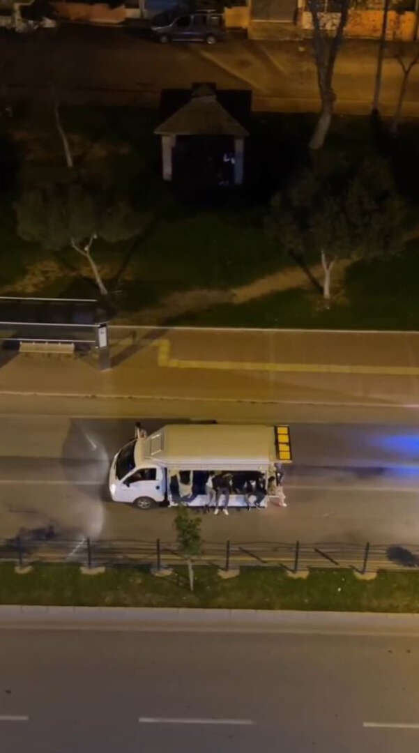 Antalya’da gece saatlerinde asker eğlencesi düzenleyen bir grup genç, kamyonetlerle konvoy oluşturdu. Gençler bununla da kalmayarak kasası açık şekilde seyir halinde olan kamyonetle yolu kapatarak asker adayını havaya attı. Çok sayıda sürücünün korno çalarak tepki gösterdiği gençler bir süre sonra bölgeden uzaklaştı.