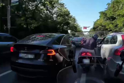 İstanbul’da bir motosiklet sürücüsü trafikte seyir halinde olduğu esnada kendisine arkadan çarpan araç sürücüsüyle tartıştı. Motosiklet sürücüsü daha sonra araç şoförüne tükürerek olay yerinden ayrıldı.