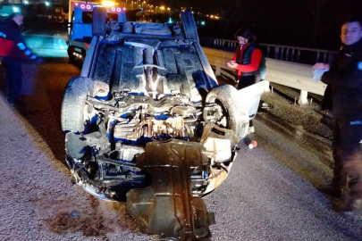 Otomobil köprü üzerinde takla attı, sürücü yara almadan kurtuldu