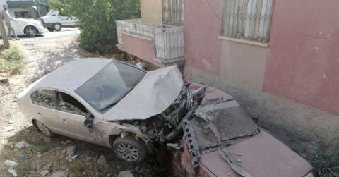 Otomobile ve yayaya çarpıp bahçedeki otomobilin üzerine uçtu
