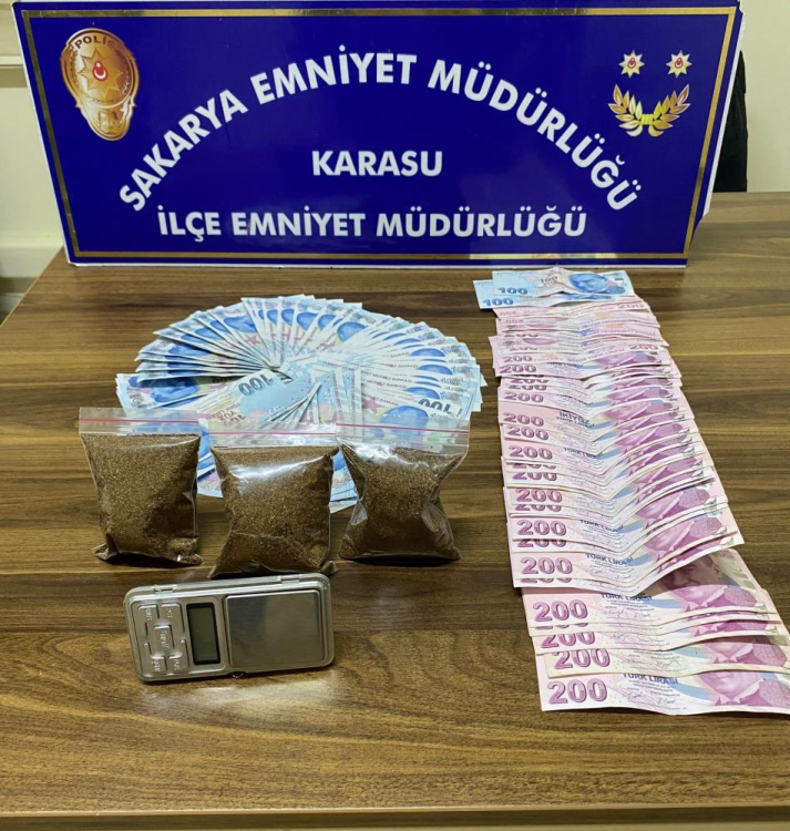 Sakarya'nın Karasu ilçesinde polis ekiplerince şüphe üzerine durdurulan bir kişinin üzerinden kubar esrar, hassas terazi ve sahte para çıktı. Ele geçirilen malzemelerle ilişkili olduğu tespit edilen şahıs, gözaltına alındı.