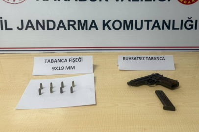 Edinilen bilgiye göre, Karabük İl Jandarma Komutanlığı ekipleri tarafından ilçede gerçekleştirilen uygulama sırasında bir şahsın üzerinde ve aracında yapılan aramada, bir adet ruhsatsız tabanca, tabancaya ait bir adet şarjör ve 8 adet 9 mm çapında fişek ele geçirildi.