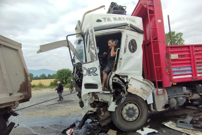Bolu'da TEM Otoyolu'nda tır ile kamyonun çarpışması sonucu meydana gelen kazada, kamyon sürücü kabinde sıkışarak yaralandı.