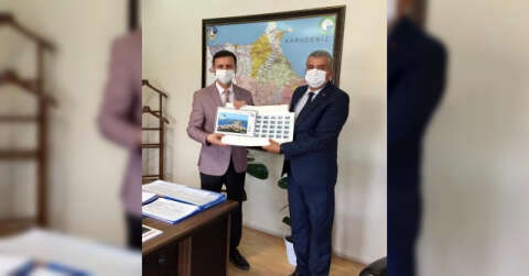 Üzerinde Sinop manzarasının bulunduğu posta pulları, PTT Sinop Başmüdürü İbrahim Köklü tarafından Sinop İl Özel İdaresi Genel Sekreteri Yahya Çınkıl’a teslim edildi.