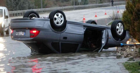 Su birikintisine giren otomobil takla attı: 3 yaralı