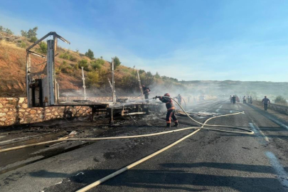 Sunta yüklü dorse alev alev yandı