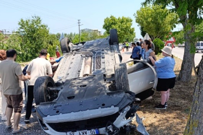 Ters dönen araçta sıkışan sürücüyü itfaiye kurtardı
