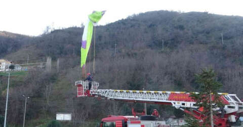 Trabzon’da yamaç paraşütçüsü elektrik tellerine takıldı