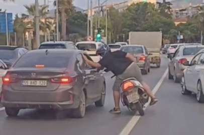 Trafikte tartışma büyüdü: Motosikletli sürücü otomobile vurdu